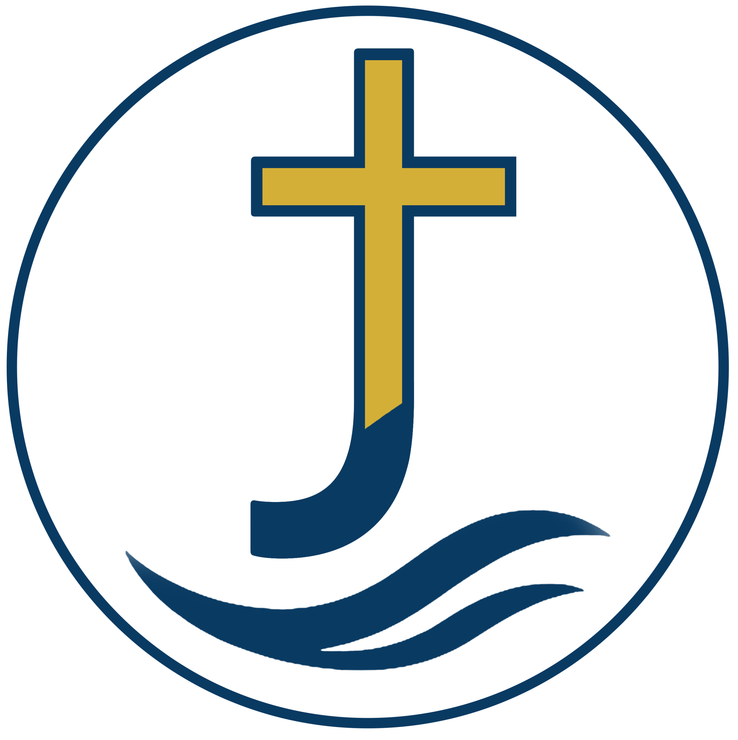 Pod krzyżem znajdują się niebieskie fale, które symbolizują wodę – główny element sakramentu chrztu. Woda w tym kontekście odnosi się bezpośrednio do misji św. Jana Chrzciciela, który udzielał chrztu nawrócenia nad Jordanem. Fale te symbolizują również życie, oczyszczenie oraz Ducha Świętego działającego w sakramentach. Można w nich także dostrzec odniesienie do lokalnej przyrody – jezior, rzek i krajobrazu Kaszub.